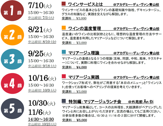 全5回のコースですので、全てを受講頂くことをお薦めしますが、ご興味のある回だけへのお申し込みも可能です。
