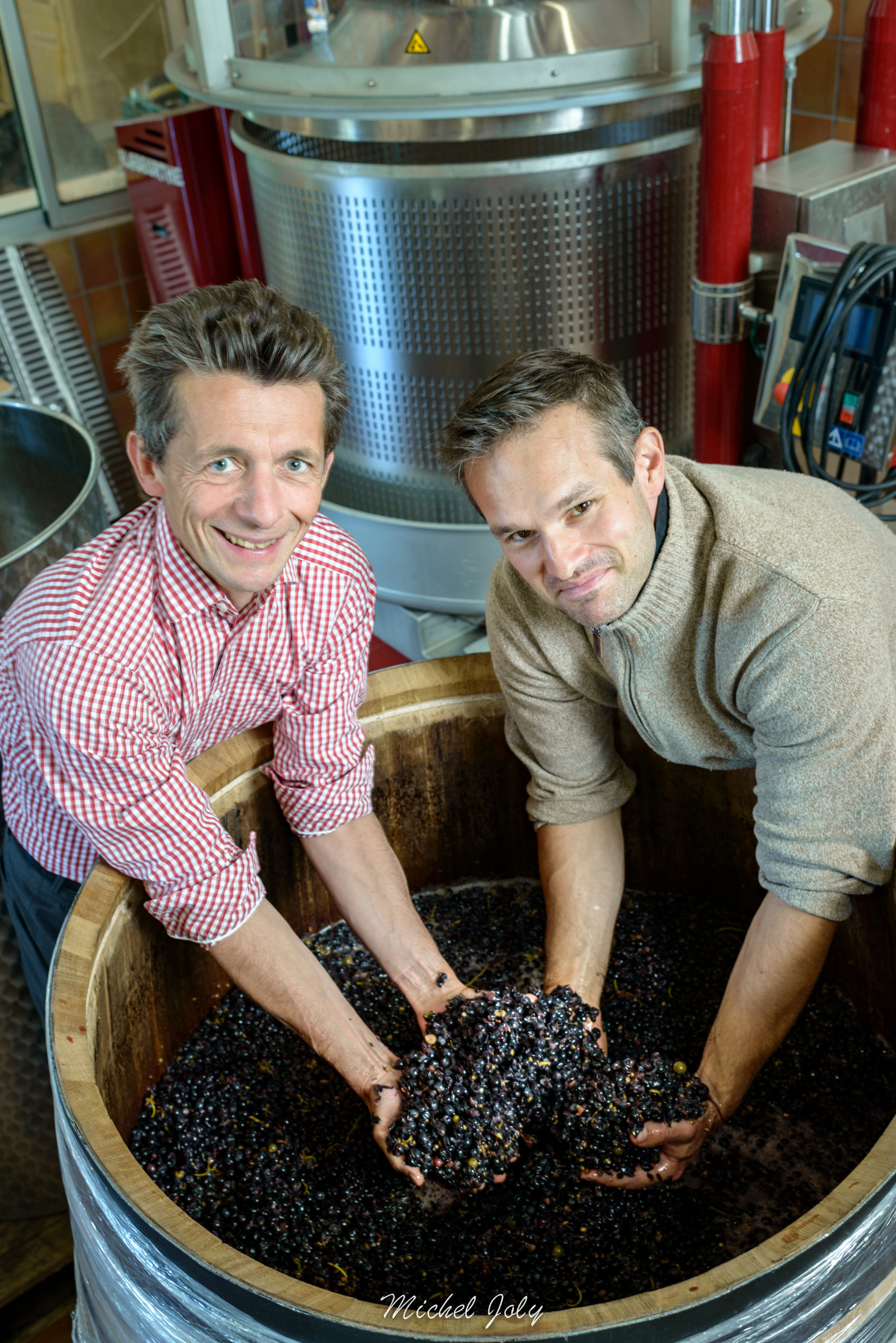 栽培は2022年にオーガニック認証を取得し、土壌にも注目。畑の土は耕し、シンプルな有機肥料を用いることで土中の微生物を活性化させ、土壌の構成を改良している。芽かきやグリーンハーヴェストで収量制限を行い、ブドウの実の通気性を確保するため、枝は長く伸ばして固定する。畑仕事を行うのは、タシュロンと呼ばれる職人たちだ。彼らは長年同じ区画を専属で管理しているため、それぞれの畑の特徴を熟知しており、気象条件や土壌によって異なる各区画のブドウの生育を健全に導くことができる。収穫時期になると区画ごとにブドウの熟度がチェックされ、収穫スケジュールが立てられる。以前はこれほど綿密な準備ができていなかったため、通常の収穫でも2週間以上かかっていたが、現在ではその期間は約1週間ほどに短縮された。手早く収穫されたブドウは容量20g/Lのカゴに入れてセラーに運ばれ、厳正な選果後、醸造が始まる。