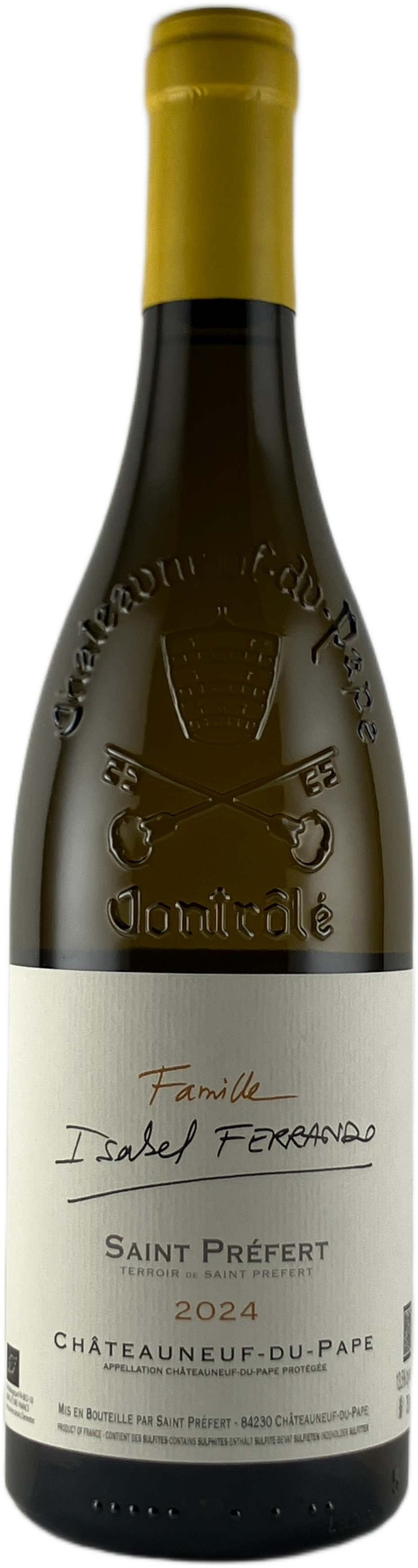2002年にイザベル・フェランドが取得したことによって復興され、一躍注目を浴びたドメーヌ・サン・プレフェール。20年間に及ぶ経験の中で、土壌、品種、各畑への理解が深まったという当主イザベルは、2022年に満を持してワイナリーの新たな歴史の幕を開く事を決意し、ドメーヌ名をファミーユ・イザベル・フェランドへ一新した。このエリア出身のイザベルはフランスの大手銀行クレディ・アグリコルでワイン生産者への融資を担当していた関係から、多くの生産者と知り合う機会に恵まれ、生産者との交流を通じてワインのテイスティングやワイン造りを学び始めた。ワインへの情熱をどうしても諦めきれなくなったイザベルは、ワインメーカーに転身するという決意を家族に打ち明け銀行を退職。故郷カルパントラ村に戻って農業学校に通い見習いワインメーカーとしてのキャリアをスタートさせた。特に親交の深かったシャトーヌフ・デュ・パプのトップドメーヌ、アンリ・ボノーのもとで修行を行い、故郷に程近い同地に念願の自分のドメーヌを持つに至った。