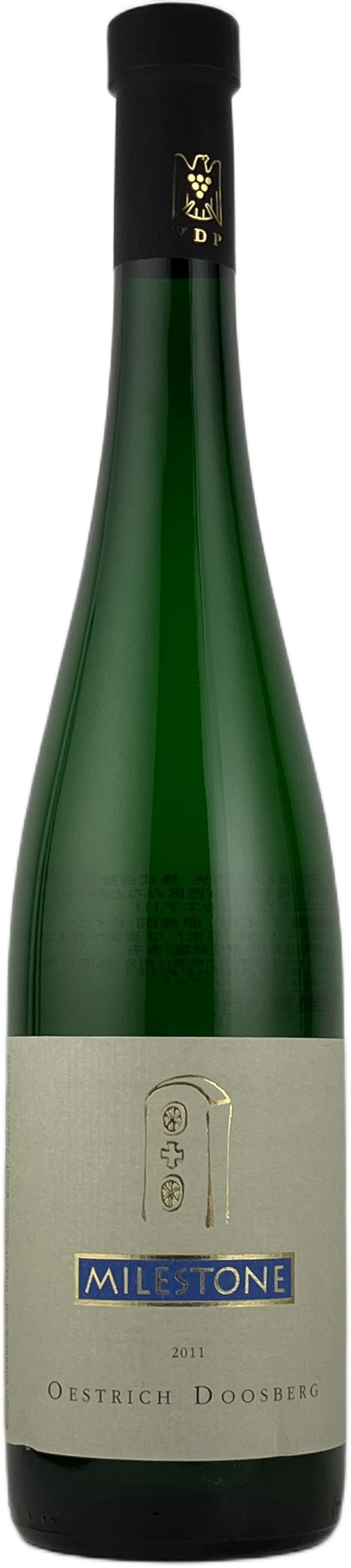 エーストリッヒ村の銘醸畑ドースベルクの樹齢30年のブドウ使用。海抜120m、南向きで、土壌は黄土&ケイ岩。「マイルストーン」を意味するこのワインはワイナリーを代表するフラッグシップ。完熟リースリングの熟成に由来する蜂蜜や洋ナシのコンポートのフレーバーの中には、繊細なミネラルがちりばめられている。後半からの複雑味が特徴的で、果実味とミネラルが重なり合うことで長い余韻へとつながっていく。